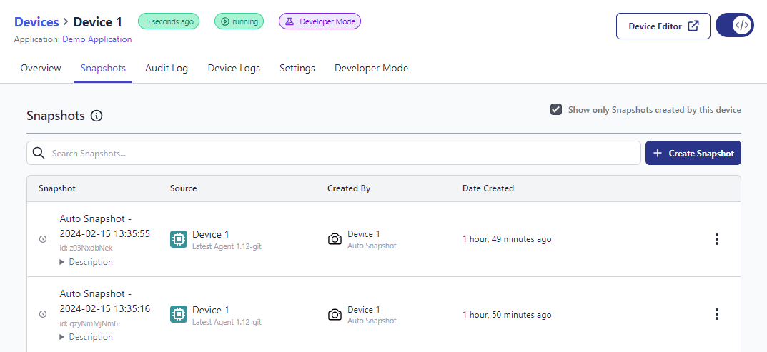 Device Auto Snapshots